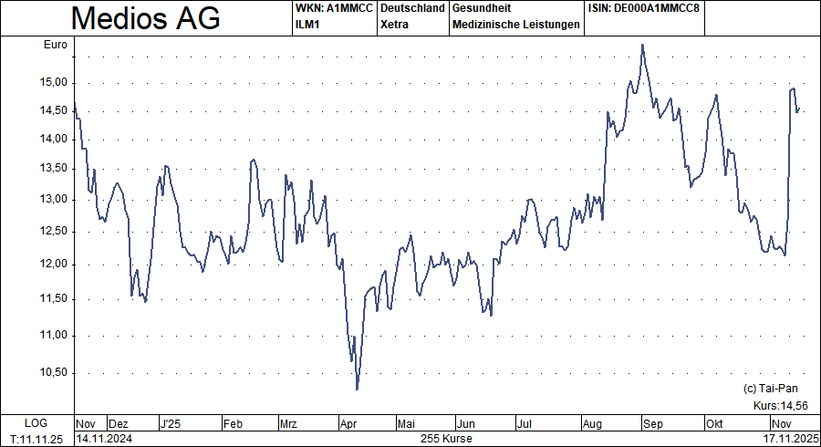 Medios, Mitglied im Value-Stars-Deutschland-Index, ist nach einem guten dritten Quartal auf Kurs, die Jahresziele zu erreichen. Die Aktie hat danach einen Sprung nach oben gemacht.