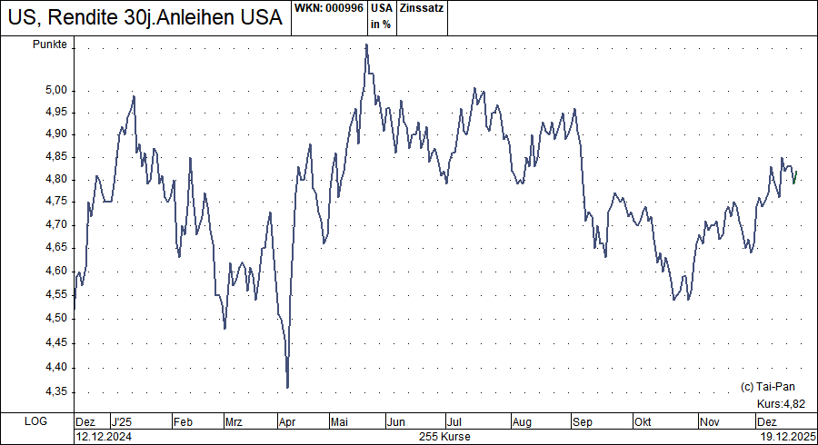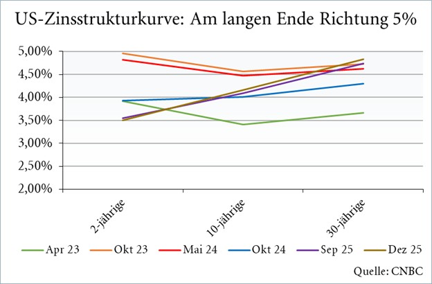 An den Anleihenmärkten ist im Jahresverlauf 2025 immer mal wieder Unruhe aufgekommen. Eine größere Welle der Verunsicherung lösten beispielsweise die Trumpschen Zoll- und Steuerpläne im Frühjahr aus, die die US-Renditen für 30-jährige Staatsanleihen zwischenzeitlich auf mehr als 5 % getrieben haben. Zuletzt ist dann auch Japan stärker in den Fokus geraten, da sich die Marktzinsen dort in den letzten Jahren ebenfalls stetig und deutlich erhöht haben, was angesichts sehr hoher Staatsschulden die Frage nach der Tragfähigkeit der Schuldenlast aufwirft.