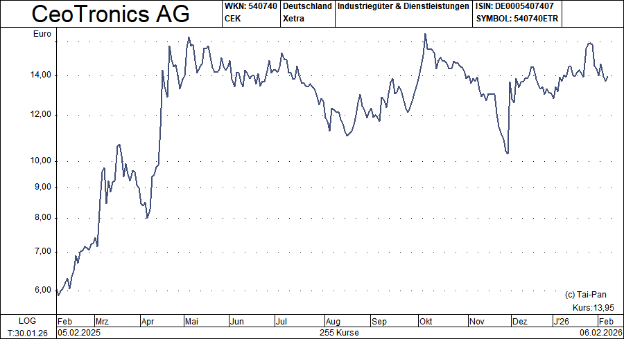 Ceotronics, Mitglied im Value-Stars-Deutschland-Index, hat im Januar zwischenzeitlich sehr stark performt. Fundamentale Unterstützung hat der Kurs dabei durch die Auftragslage erhalten.