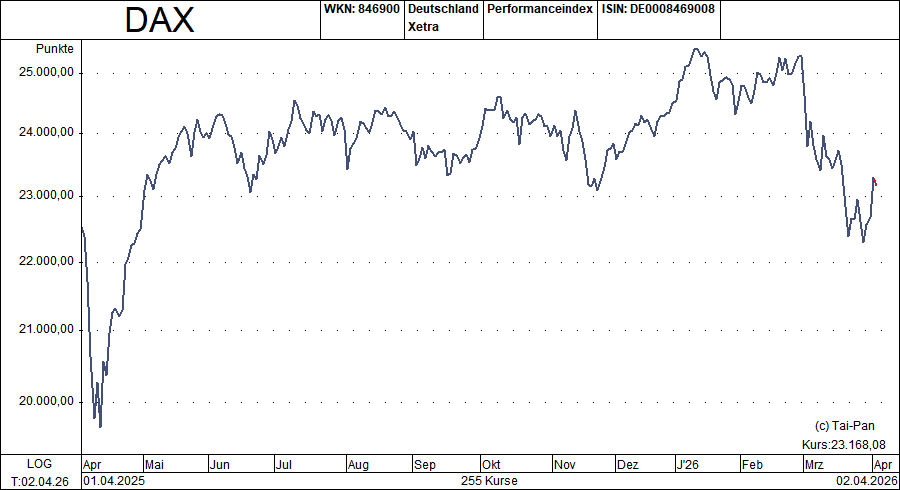 Der DAX kämpft um die Marke von 23.000 Punkten – die untere Begrenzung der Seitwärtsphase von Mai bis November 2025. Auch, wenn diese Schlacht vielleicht zunächst verloren geht, bietet die miese Stimmung perspektivisch Potenzial für eine Erholung.